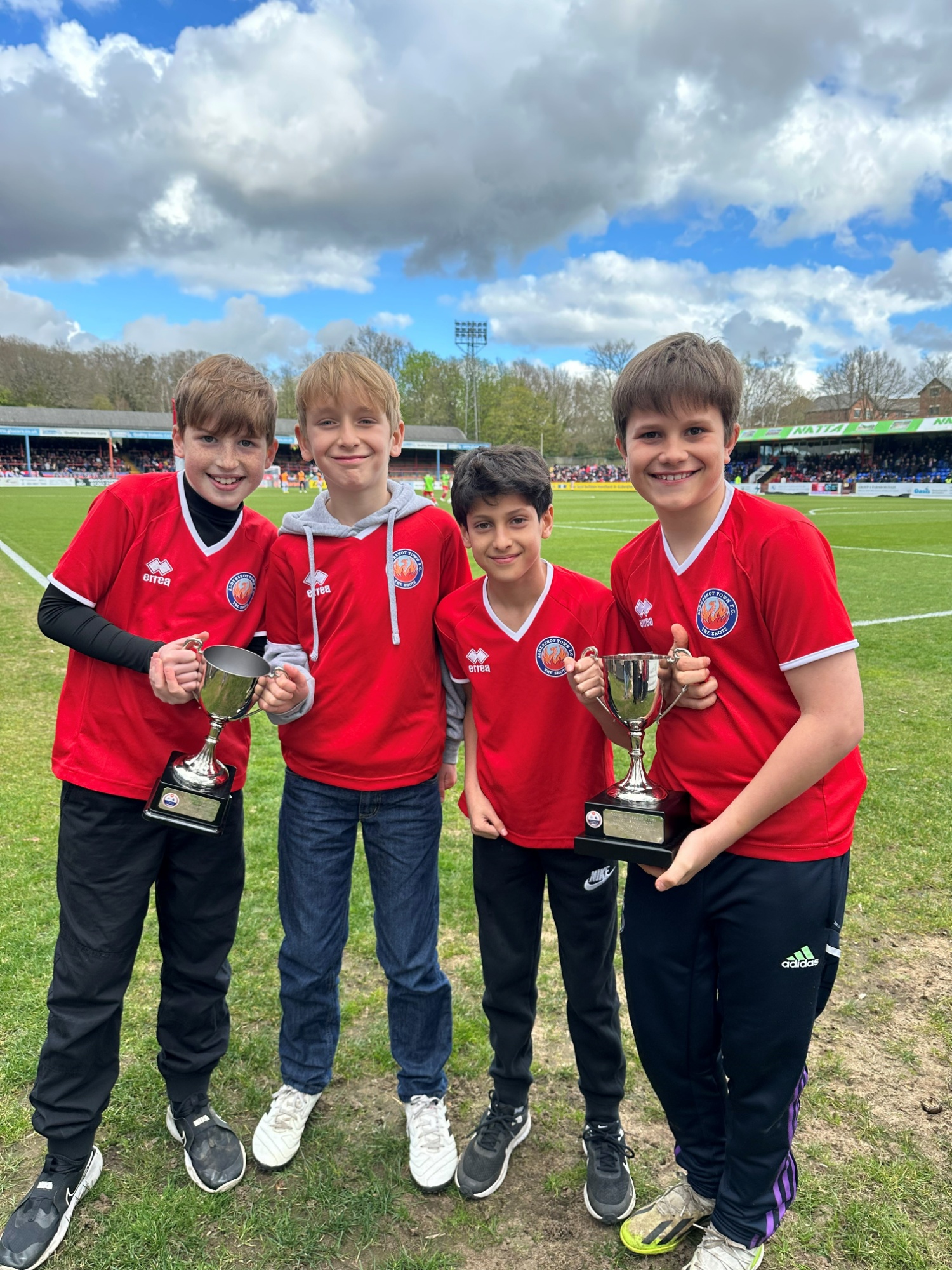 South Farnham School represented Aldershot Town Football Club in a South England competition and won! To celebrate, representatives from the team paraded their trophies at half-time at Aldershot's game against Dorking Wanderers. The team have now qualified for the finals and are going to represent Aldershot at Wembley. We are so proud of you all!
